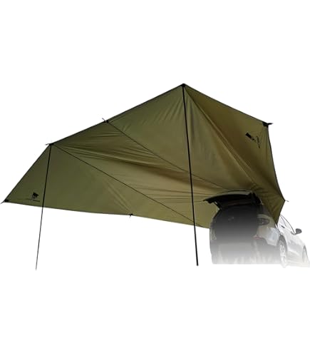 Fit SUVs, Jeeps, MPVs, Vans, CUVs, and more, making it perfect for tailgating, camping, or any other outdoor activity. Canopy Tent AYAMAYA Tarp Poles - Telescoping Camping Tent Poles Replacement, Upgraded 4-Section Heavy Duty Aluminum Rods With Stakes & Guylines For Tents, Rain Fly, Camping Shelter, Awning Canopy RV Car, Set Of Camping Tarp With Poles The tarp is made from a premium, high-quality waterproof material with reinforced seams and glued edges, guaranteeing complete protection against the elements. Premium Waterproof Material: The car tailgate awning crafted from high-quality waterproof material with reinforced seams and glued edges,ensures 100% protection against rain and sun exposure. All the essentials for a hassle-free camping experience, ensuring stability and easy assembly. Comprehensive Accessories: The tailgate tent comes with 2 adjustable poles, 9 stakes, 7 guylines and a convenient storage bag. With eight strategically placed perforations, the tailgate tarp offers multiple setup options, providing flexibility for various camping requirements. It is perfect for comfortably accommodating 6-8 people. Safety Warning Ensure proper anchoring according to the provided instructions, considering wind resistance and load-bearing capacity for different vehicle types. The AYAMAYA Car Camping Tarp boasts an extra-large size of 14 x 16 feet, offering extensive coverage for outdoor activities. What Stands Out. Spacious Design SUV Awning - 20m² Shade, Adjustable Poles, Quick Setup Wide Vehicle Compatibility: The car tailgate tarp is designed to fit a variety of vehicles, including SUVs, Jeeps, MPVs, Vans, CUVs, and more. AYAMAYA Auvent de voiture Camping Tarp Tailgate Generous Size: The AYAMAYA Car Camping Tarp boasts an extra-large size of 14 x 16 feet, offering extensive coverage for outdoor activities. Perfect for tailgating, camping, or any outdoor activity.
