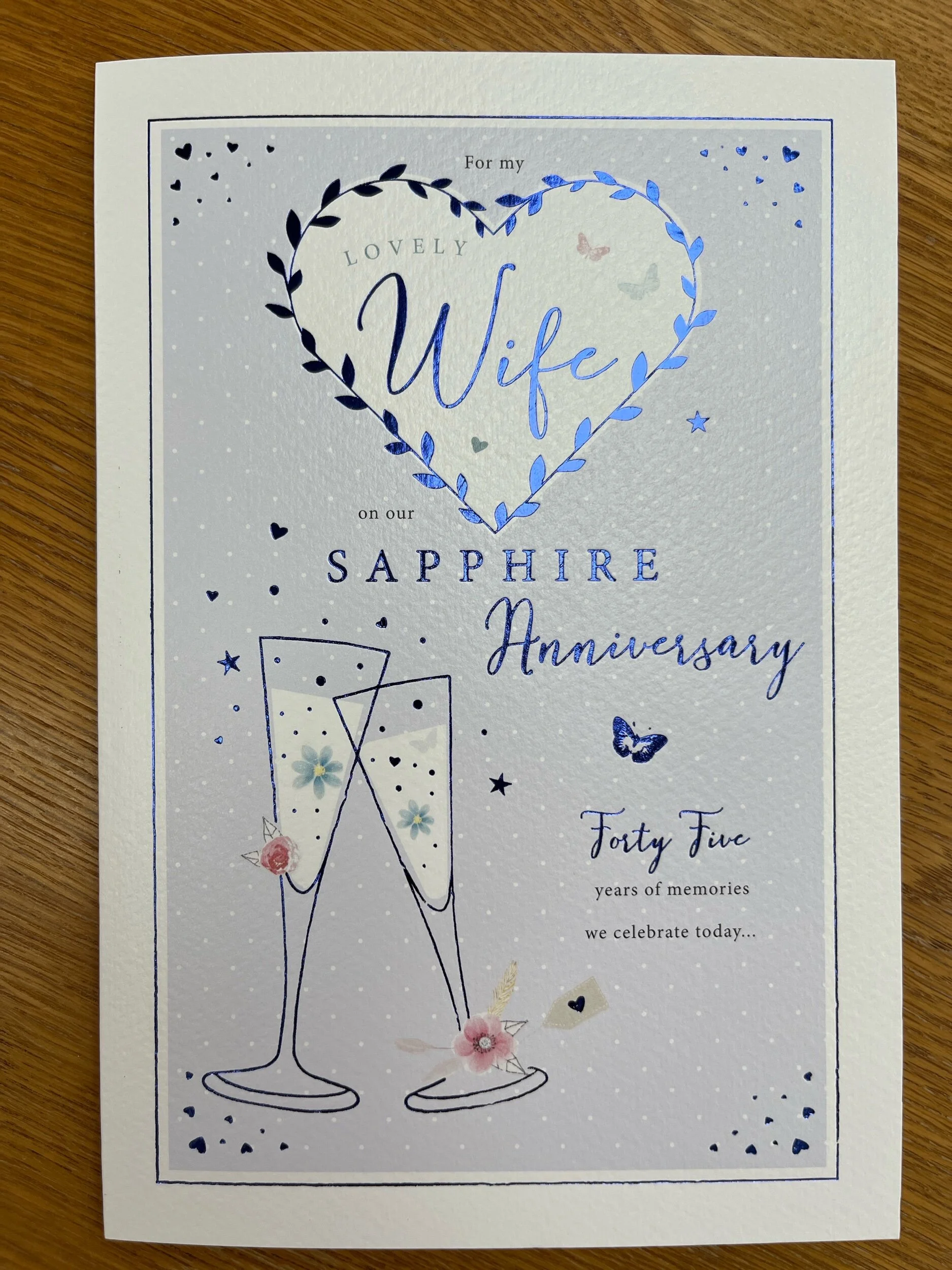 Approximate size of Card 15cm x 15cm - Card is blank inside 45th Anniversary Card For Wife My Wife 45 Years Anniversary Card My Wife 45Th Wedding Anniversary Card - On Our Sapphire Blank Inside Anniversary Card 15x15cm Marriage/Congratulations. 45 Years Together. Sent from and sold by The Commemorative Coin Company. Some of these items are dispatched sooner than the others. This Card is from our unique Rosie Online range of quality Verse Wedding Anniversary Cards, Our Anniversary Years Design. Rosie Online. 15 x 15 x 0.1 cm; 56 g. Blue Unique Rosie Online My Wife 45th Wedding Anniversary Card My Wife 45th Wedding Anniversary Card - On Our Sapphire Anniversary - 45 Years - Sentimental Verse I Love You This Card is from our unique Rosie Online range of quality Verse Wedding Anniversary Cards, Our Anniversary Years Design.