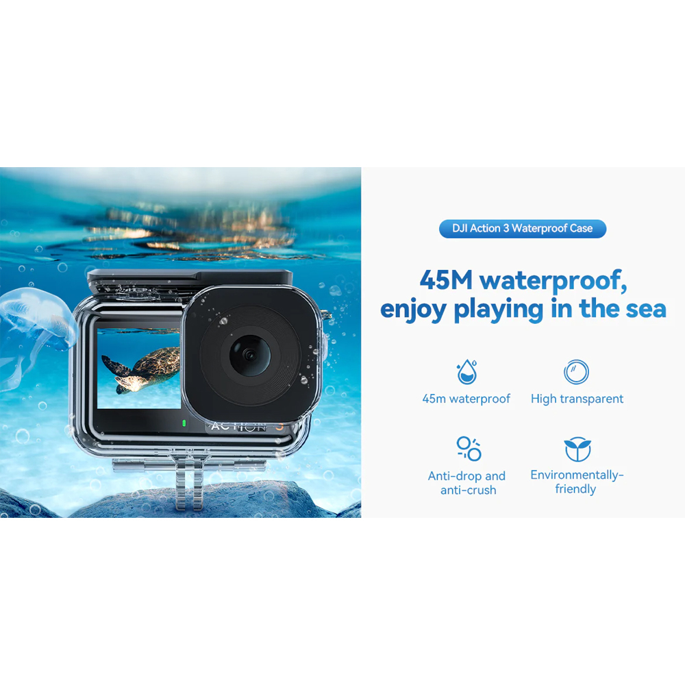 Learn MoreREFLEX CAMERA Clear Waterproof Housing Case offering Ultimate Protection Take your action shots to new depths with the REFLEX CAMERA Clear Waterproof Housing Case, specially compatible with DJI Osmo Action 3, Action 4, and Osmo Action 5 Pro. Protect your DJI Osmo Action 3 and 4 from the elements with the REFLEX CAMERA CPH-XDJ37 Clear Waterproof Housing Case. Engineered for adventurers, this rugged housing is ideal for underwater filming, extreme sports, and rough outdoor conditions This transparent clear housing allows for full visibility and control, with an invisible touch screen that provides seamless touchscreen functionality even underwater. [High-Quality ABS Construction] Built to withstand extreme conditions, this protective case is crafted from premium ABS material, offering superior durability and impact resistance. Capture stunning footage without distortion, thanks to the crystal-clear design that ensures vibrant, high-quality images. [Waterproof Depth Up to 40 Meters (131 Feet)] Engineered for deep-water adventures, this housing allows you to capture breathtaking underwater footage at depths of up to 40 meters (131 feet). Designed with precision for a secure fit, this waterproof camera case guarantees full compatibility with DJI 4 accessories, while protecting your action cam from water, dust, and impact. The durable water proof housing is built to withstand tough conditions, giving you the freedom to explore underwater worlds with confidence. The high-sensitivity transparent touch screen ensures clear visibility and smooth operation, allowing you to adjust settings, preview shots, and navigate menus effortlessly while submerged. Engineered for underwater adventures, this action camera underwater case is waterproof up to 40 metres, making it perfect for scuba diving, snorkelling, swimming, and other extreme water sports. 40 Meter Waterproof Housing XIEzd Travel Waterproof Case Compatible With Dji Osmo Pocket 3 Creator Combo Accessories 3 Magnetic Filter Storage Slots 2 Storage Card Slots Action Camera Protection Case Lightweight and easy to carry, this pocket-sized waterproof case is the ultimate adventure companion for thrill-seekers and photographers alike. The transparent rear touch screen allows seamless camera control, even underwater, while the anti-fog, scratch-resistant lens ensures your shots are crystal clear in any environment. Designed with a robust ABS shell, this case fits snugly over your Osmo Action 3/4 for secure, protective use without hindering camera access. Whether you're snorkeling in tropical waters or racing down muddy... [Transparent Touch Screen] Stay in full control of your camera even underwater. Transparent Waterproof Case Swimming Diving Protective Case for DJI Osmo Pocket3 [Compatible with DJI Osmo Action 3 & 4] Designed with a tailored fit for DJI Osmo Action 3 and 4 cameras, this waterproof housing ensures a secure and snug enclosure.