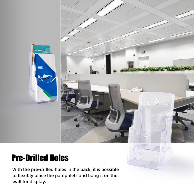 Learn MoreIn the rare case of any issues, our dedicated team provides fast and effective solutions. Each brochure holder stand is ideal for displaying 8., 5×11 inch materials such as flyers, menus, and magazines, or can hold two 4×9 inch brochures at the same time. Clear Pamphlet Holder 8.5x11 Stockroom Plus 6 Pack Clear Brochure Holder Wall Mount, Mounted Flyer Pamphlet Rack, Card Display Stand For Menu (4x8x3 In Document Display Ideal for Multiple Scenarios: Perfect plastic frames for the office, hotel, library, school, church, restaurant, bar, conference, exhibition, fair, trade show, wedding events etc. A4 and DL Acrylic Brochure Holder for our Retail Display System Stability and Flexibility: This pamphlet holder display stand features a tilted back panel for stable freestanding placement on flat surfaces, with non-slip slots to securely hold pamphlets. Each brochure holder measures 9., 25 x 2., 20 x 10., 63 inches (23., 5 x 5., 6 x 27 cm) and features a clear design for a modern look. Multifunctional Application: This brochure holder works perfectly in any environment - whether in home offices, reception areas, waiting rooms or retail spaces. Premium-Grade Acrylic Construction: Crafted from premium acrylic, this brochure holder combines crystal clarity with rugged durability. Specifications of MAOPINER 4 Pack Acrylic Brochure Display Stand: Material: Acrylic Color: Transparent Size: (Approx) 23., 5 x 5., 6 x 27 cm (9., 25 x 2., 20 x 10., 63 inches) Applicable Paper: 21., 6 x 28 cm( 8., 5 x 11 inches) Mounting : Countertop or Wall Mount (screws not included) Package Included: 4 x Brochure Holder Stands 4Pcs Acrylic Brochure Holder With 4 Business Card Holder Office Tabletop Wall Mount Organizer Brochure Display Stand Trifold Holder Stand Menu Booklet Literature Display For Countertop P 340594072 Multifunctional Application: The acrylic brochure holder is ideal for displaying your ads, signs, announcements, brochures, fliers, certificates, photos, menu holders for restaurants and more. Aazon.co: zavekia 8.5 x 11 Acrylic Sign Holder with Business Card... Pre-drilled wall-mount holes offer added versatility for both tabletop and wall display options.