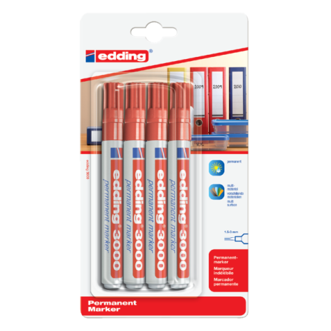 P370 + P378 For brand: ., ., ., use to delete. 3 pieces Edding 3000 black permanent markers. They are particularly suitable for writing, painting and marking on almost all materials, including glass, metal and plastic. Permanent, low-odour alcohol-based ink. Shaft: aluminium, line thickness: approx. 1, 5-3 mm writing point, replaceable. P102 Shaft: aluminium, line width: approx. Ideal for labelling, painting and marking on almost all materials, including glass, metal and plastic. Buy Edding 3000 4-3000-999 Permanent marker Black, Red, Dark blue, Dark green, Yellow, Light blue, Rose, Brown, Orange, Viol | Electronic Edding 3000 Marcador permanente - rellenable, 1,5-3 mm Safety Warning P102: Keep out of reach of children. P501: Dispose of contents/container in accordance with national regulations, only empty leftover, P405 store under closure. Permanent, low-odour, waterproof, quick drying and abrasion resistant ink , Line width: 1., 5 - 3 mm , Tip: round tip. Refillable Permanent Marker Edding 3000 Pack 1.5-3mm s (6 Black Permanent Markers Pack Of 3 Refillable marker, permanent ink